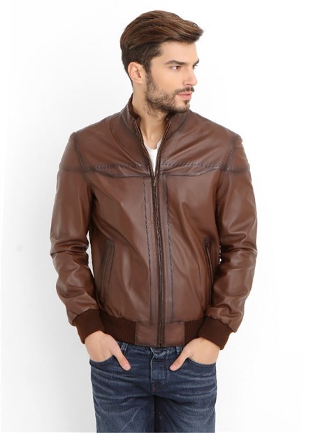 Męska kurtka ze skóry naturalnej - Brązowa #317775